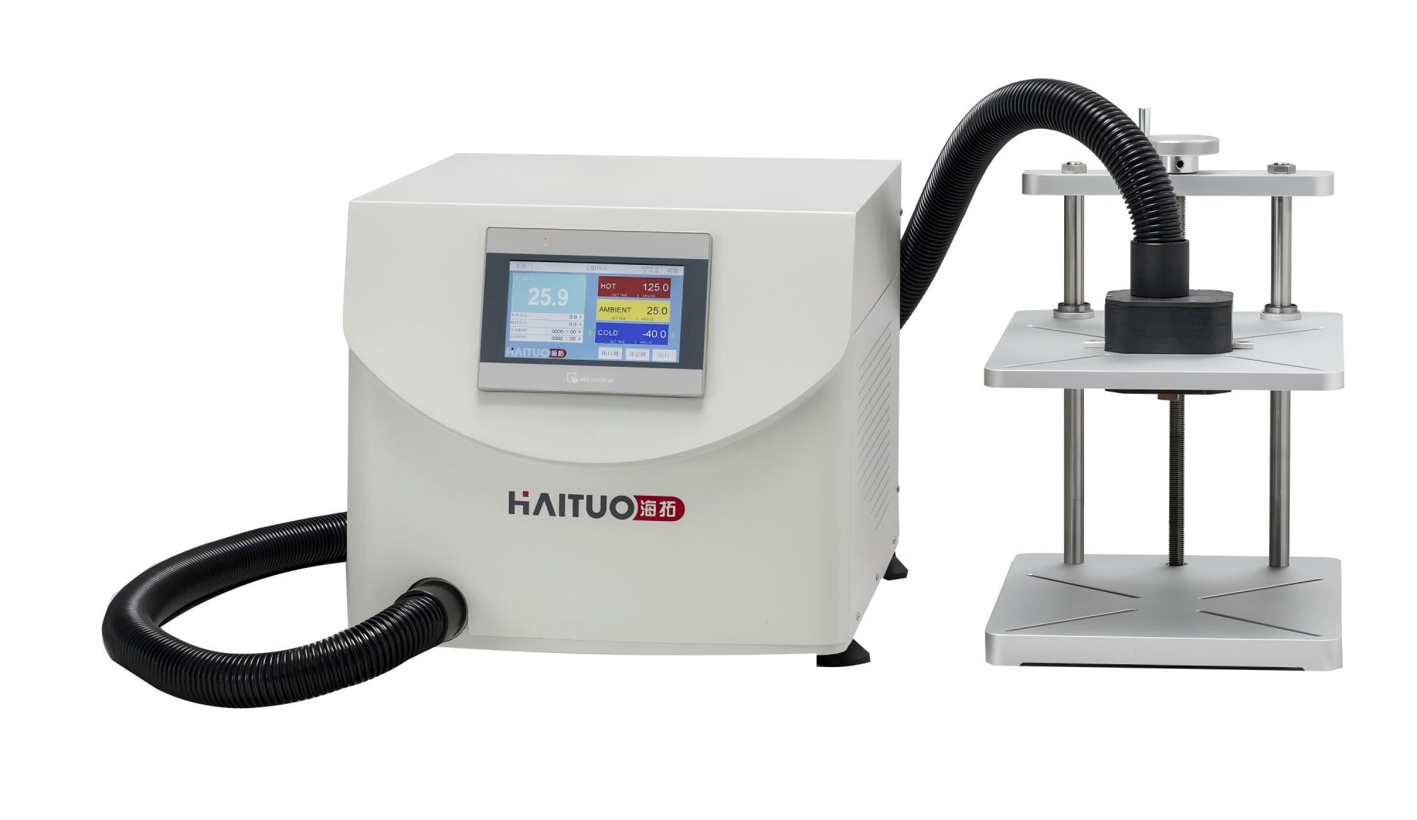 【CIOE2018】海拓儀器攜系列產(chǎn)品精彩亮相 展位號 1225-12269月5日-8日,第20屆中國國際光電博覽會(CIOE2018)在深圳會展中心盛大舉行,氣候環(huán)境模擬定制專家海拓儀器攜帶多款熱沖擊試驗(yàn)箱、在線式高低溫試驗(yàn)箱、小型TCT快速溫循箱等產(chǎn)品參展,展位1225-1226歡迎業(yè)界朋友蒞臨展會交流。海拓向訊石介紹,海拓此次展出的在線式高低溫試驗(yàn)箱和小型TCT快速溫循箱可應(yīng)用于光通訊、半導(dǎo)體、電子行業(yè)可靠性/性能測試方案。150L的容積,每分鐘線性溫度15℃,溫度范圍可控制在-70℃~+150℃,同款設(shè)備采用了同行業(yè)一般也不會挑戰(zhàn)使用的風(fēng)冷系統(tǒng),自主研發(fā)控制系統(tǒng),控制精確,快而穩(wěn)定,一定程度上保證了設(shè)備的使用周期。智能電子自動(dòng)轉(zhuǎn)換膨脹系統(tǒng),根據(jù)負(fù)載自動(dòng)調(diào)節(jié)冷媒流量+智能型電熱功率,(負(fù)載)升降溫匹配,自動(dòng)輸出功率值,比傳統(tǒng)設(shè)計(jì)可省電30%以上,且占地僅需0.27平方米,不僅保證了產(chǎn)品的質(zhì)量,也為客戶節(jié)約了一定的成本。同時(shí),海拓儀器還展出了一款熱沖擊試驗(yàn)新